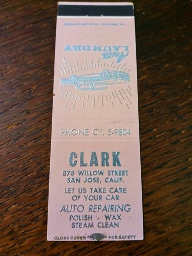 Vintage Matchcover Clark Auto Service Car Wash San Jose Ca Ebay